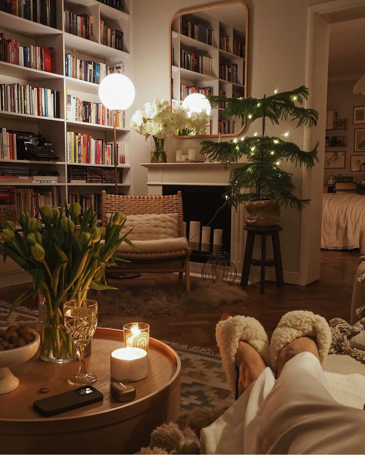 I’ve also seen a lot of small Norfolk pine trees this year. I’d prefer to find a real tree but I found many fake trees on Amazon as well. These 3-4 foot trees are placed all throughout homes with a simple strand of lights. I’m seeing them in vintage pots or a simple clear vase. I do know pines indoors require a lot of water and dry out quickly. Once they dry, there’s no way to bring them back but I think I’m up for the challenge. Target just got a big shipment, fyi!