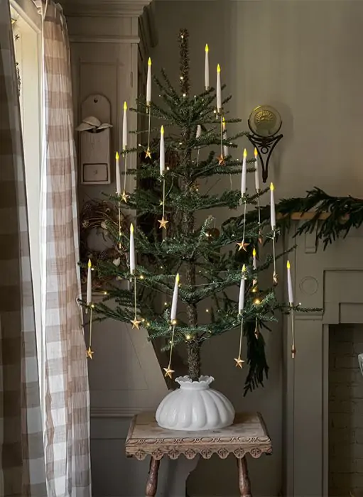 Another trend I like are clip on candles. These vintage looking candles typically take batteries and clip onto the branches of your Christmas tree. I found several sets on Amazon with a remote and a timer.